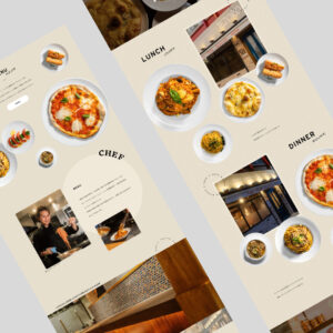 サイトデザインでは、写真とアニメーションを組み合わせることで「ふらっと立ち寄れるカジュアルなイタリアン」らしさ を表現。料理の物撮りや店舗風景などの写真撮影も行い、実際の雰囲気が伝わるビジュアルを基盤に制作しました。